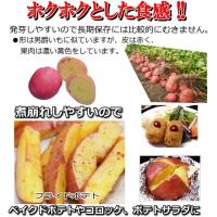 形は男爵いもに似ていますが、皮は赤く、果肉は濃い黄色をしています。
