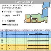 熟期は、貯蔵種としては早めにとれる中晩生種で6月上中旬収穫。長期貯蔵に最適で、貯蔵病害も少ない品種です。