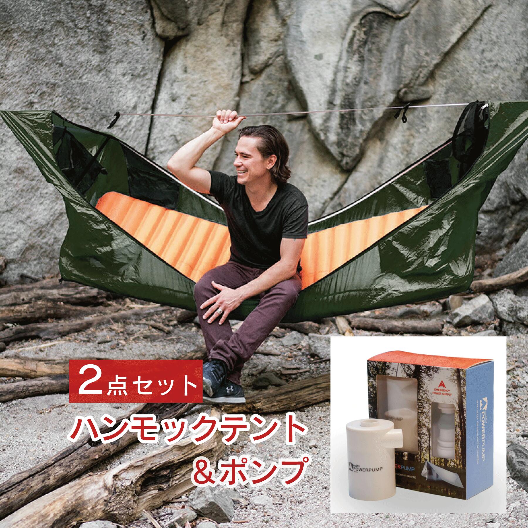 | パッケージ内容 | Haven Tent ヘブンテント・・・本体(蚊帳付)、フライシート、エアマットレス、ツリーストラップ、ガイライン、ペグ、収納袋 Haven Power Pump (パワーポンプ)・・・本体、USB/Type-Cケーブル、付属ノズル4種