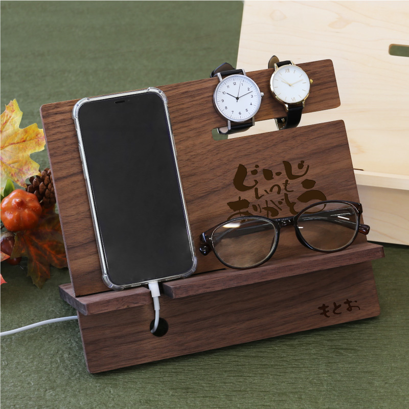 スマホスタンド スマホ スタンド 充電スタンド メガネスタンド 時計 木製 インテリア 卓上 収納 名入れ コモノレスト