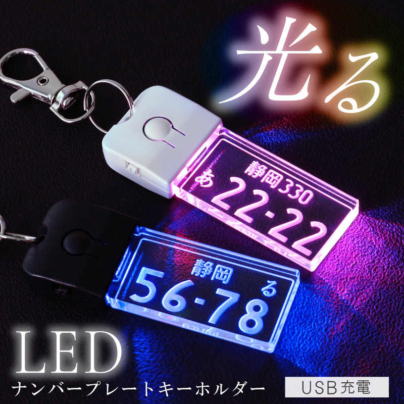 光る ナンバープレート キーホルダー 誕生日 プレゼント ギフト リアル ledライト USB 充電 名入れ ナンバープレートキーホルダー ・ LED