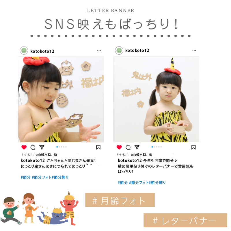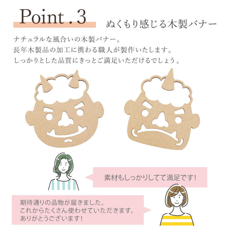 子どもの成長の記録になる、節分フォト用木製バナー。