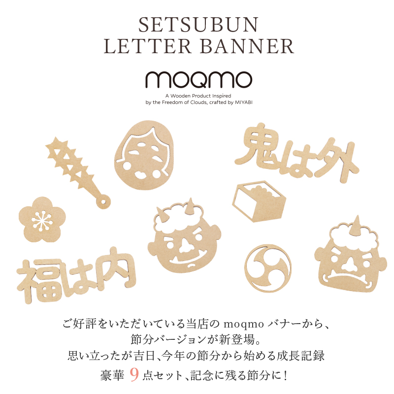 月齢フォト 鬼は外 福は内 moqmo モクモバナー 寝相アート おしゃれ かわいい 鬼のお面 おかめ 名入れ 木製 レターバナー 節分