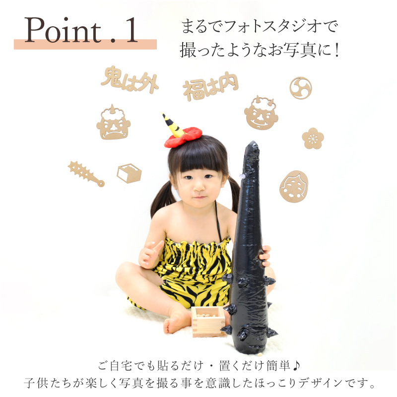 1)家庭で簡単に節分のフォトスタジオ風写真が残せる