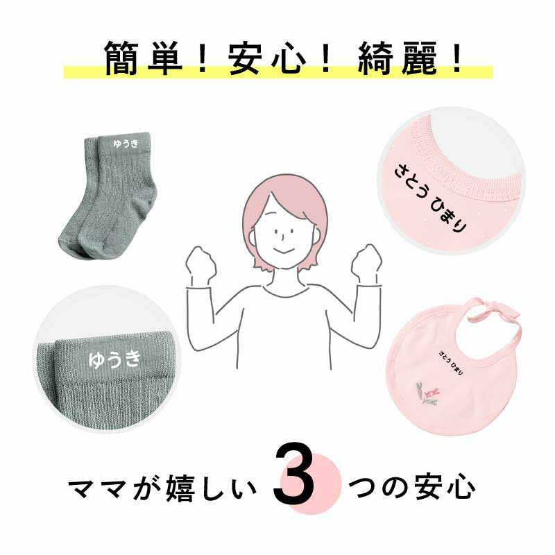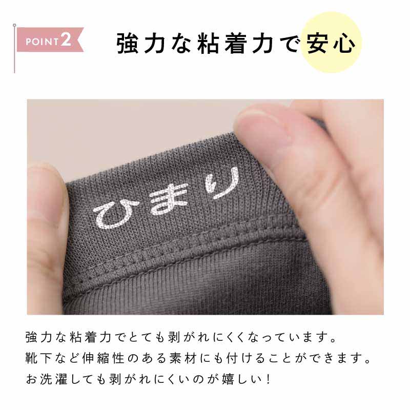 一度ついたら何度お洗濯してもなかなかはがれにくい性質だから安心です。