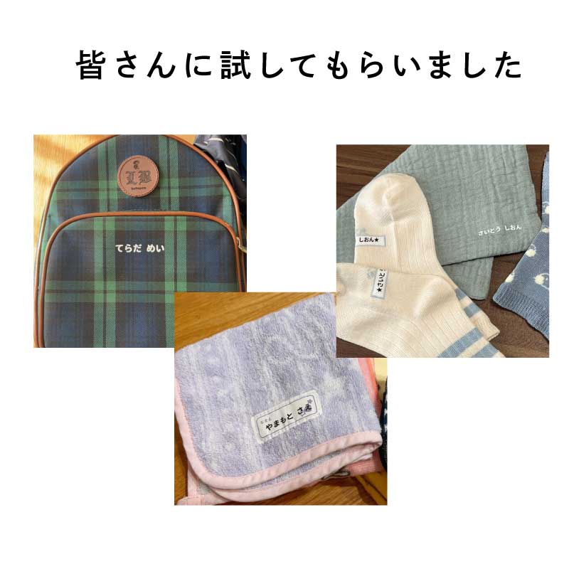 一般的なお名前シールの様に枠が無いから下地に馴染み、自然な仕上がりです。