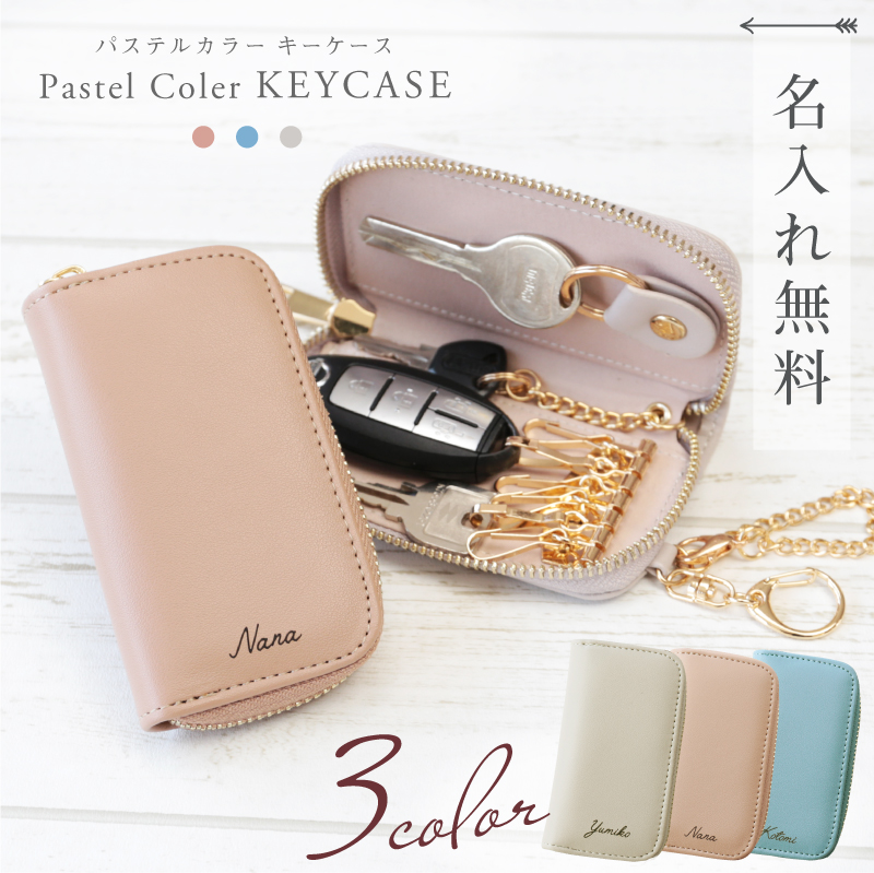 キーケース レディース 可愛い おしゃれ 鍵 スマートキー 小型 軽量 ピンク ベージュ ブルー 大人 女性 彼女 ギフト 人気 名入れ パステルカラーキーケース
