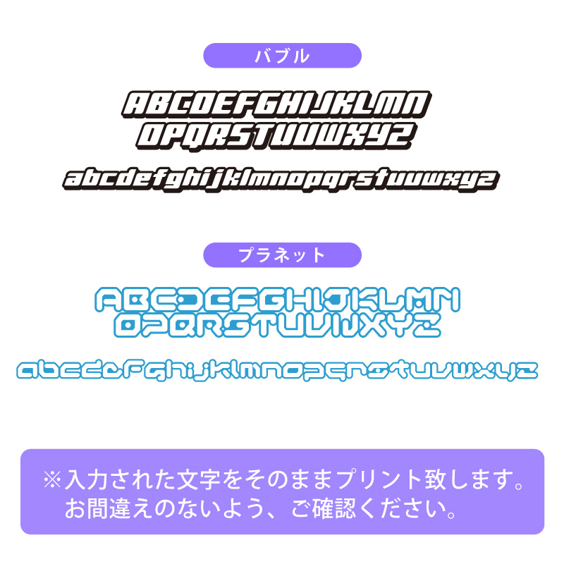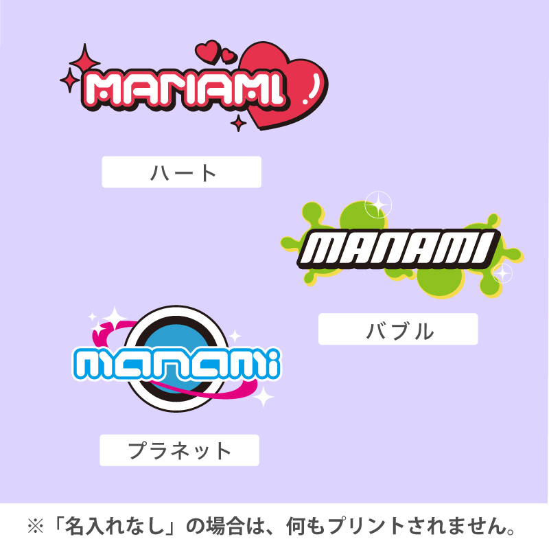 お名前・ローマ字のみ ※日本語不可・文字数10文字迄・「名入れなし」の場合、デザインもプリントされません。
