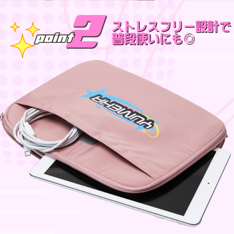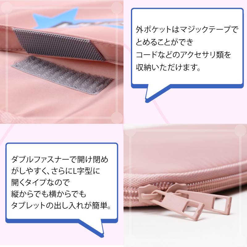 外ポケットにはペンや充電ケーブルなどのタブレットアクセサリーを入れて持ち運ぶことが出来ます。