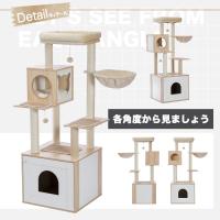 送料無料 キャットタワー トイレ 猫タワー 多頭 木製 収納 家具 ぶつかり防止 安全対策 滑り止めマット高さ146cm