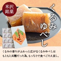 当店の代表的銘菓。くるみ、しょうゆ味の餅菓子で、あんは入っていません。上杉藩の兵糧として発達しました。