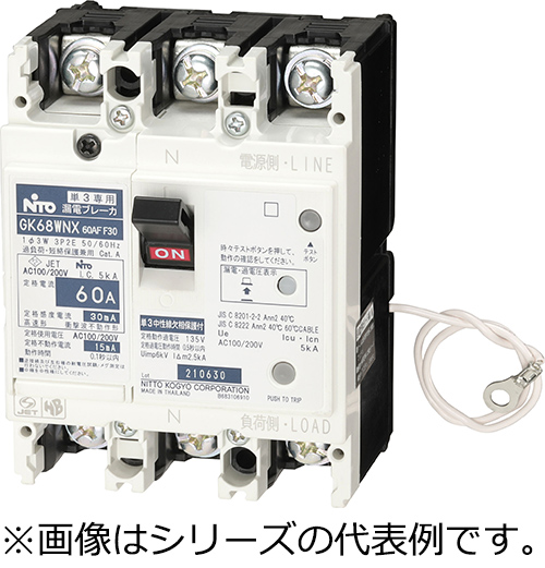 GK68WNX 3P 60A F30 日東工業 単3中性線欠相保護付漏電ブレーカ・Kシリーズ(JIS協約形) フレームAF60、極数3P、定格電流60A、定格感度電流30mA