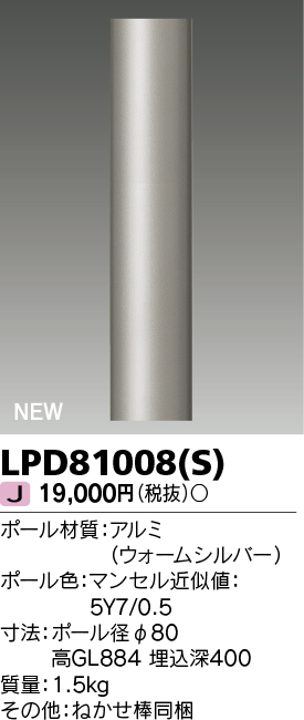 LPD81008(S) 東芝 LEDローポールライト ロングポールのみ 地上高1000mm【灯具別売】