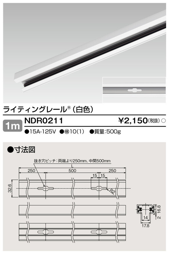NDR0211 東芝 ライティングレール(白色、1m)