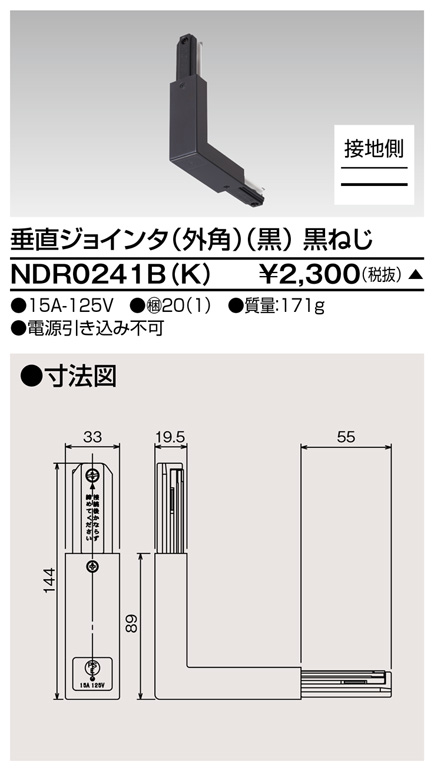 NDR0241BK 東芝 垂直ジョインタ 外角 黒【NDR0241Kの後継機種】