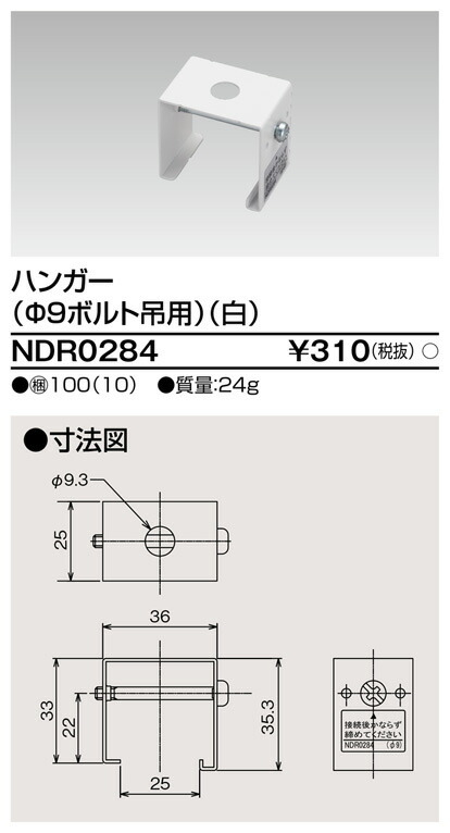 NDR0284 東芝 ハンガー(φ9ボルト吊用、白)