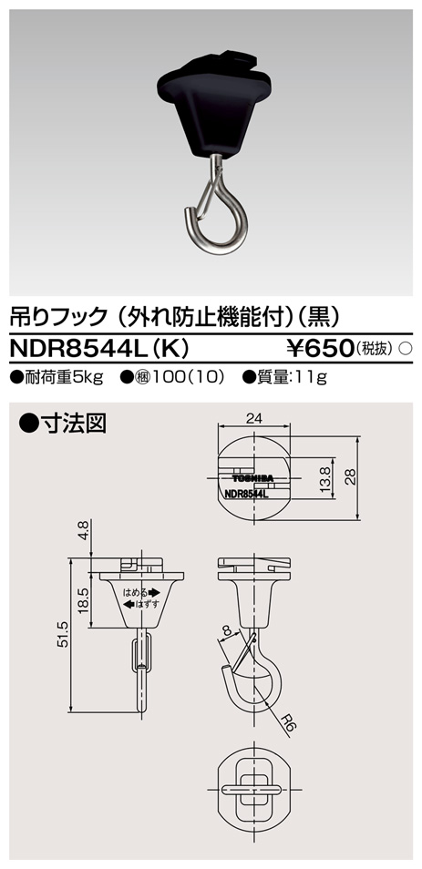 NDR8544L(K) 東芝 吊りフック 外れ防止機能付 黒