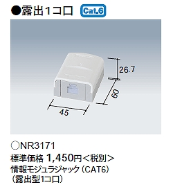 NR3171 パナソニック 情報モジュラジャック(CAT6)(露出型1コ口)