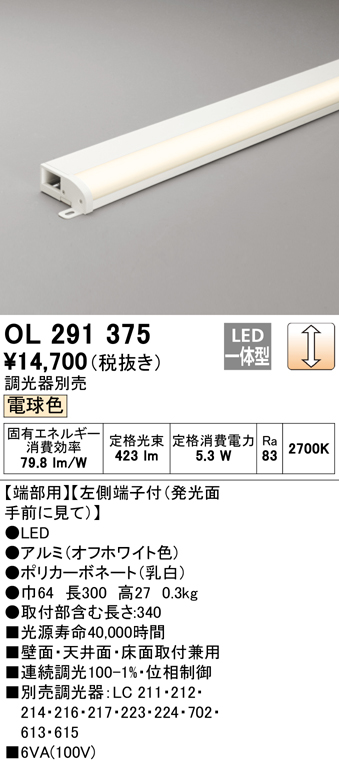 【掘り出しモノ】OL291375 オーデリック LED間接照明 端部用 調光 電球色【他店舗併売品】