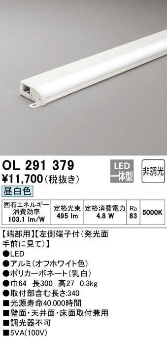 【掘り出しモノ】OL291379 オーデリック LED間接照明 端部用 昼白色【他店舗併売品】