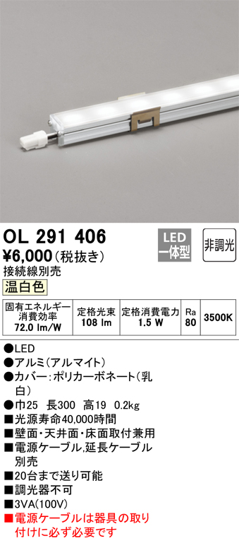 【掘り出しモノ】OL291406 オーデリック LED間接照明 温白色【接続線別売】【他店舗併売品】