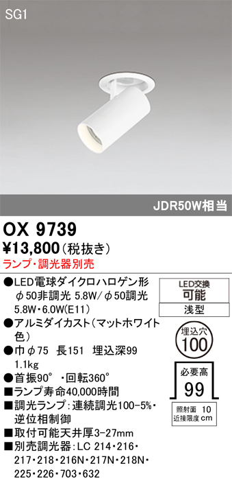 【掘り出しモノ】OX9739 オーデリック LEDダウンスポットライト φ100【ランプ・調光器別売】【他店舗併売品】