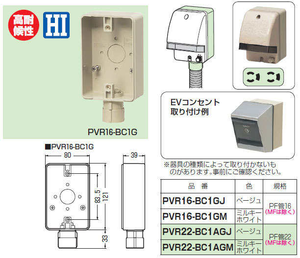 PVR16-BC1GJ 未来工業 露出スイッチボックス[防水コンセント用](ベージュ)