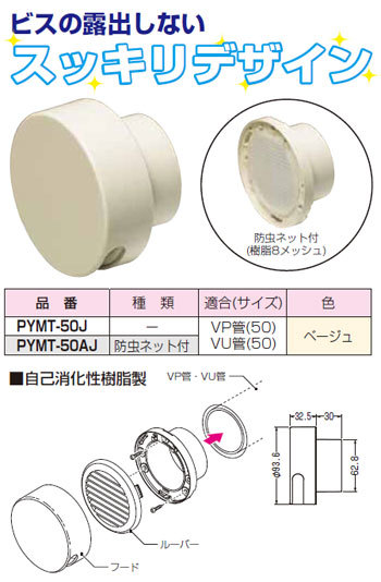 PYMT-50AJ 未来工業 パイプフード(通気口)(防虫ネット付)