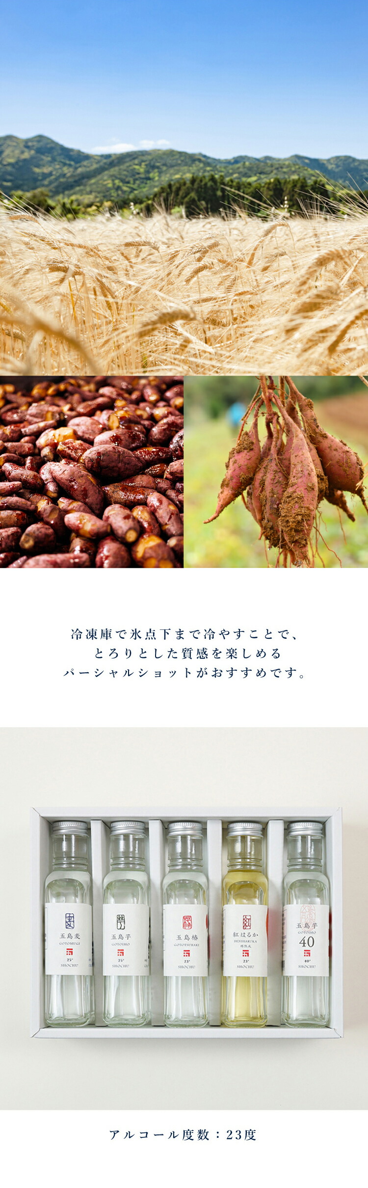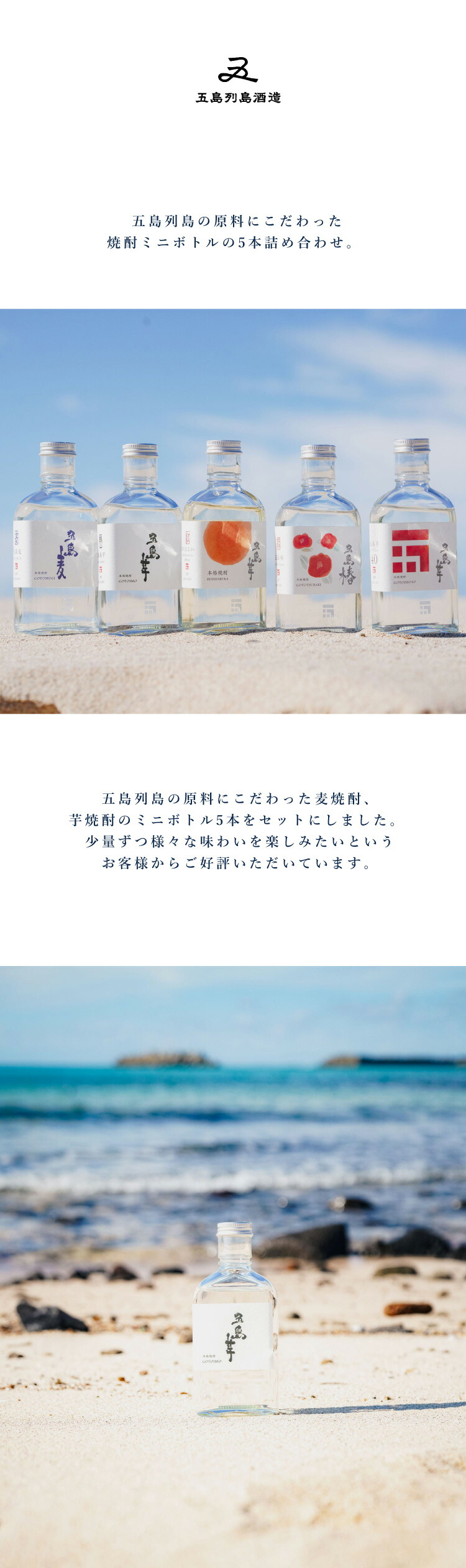 | キャッチコピー | 五島列島の原料にこだわった焼酎ミニボトルの5本詰め合わせ。 |