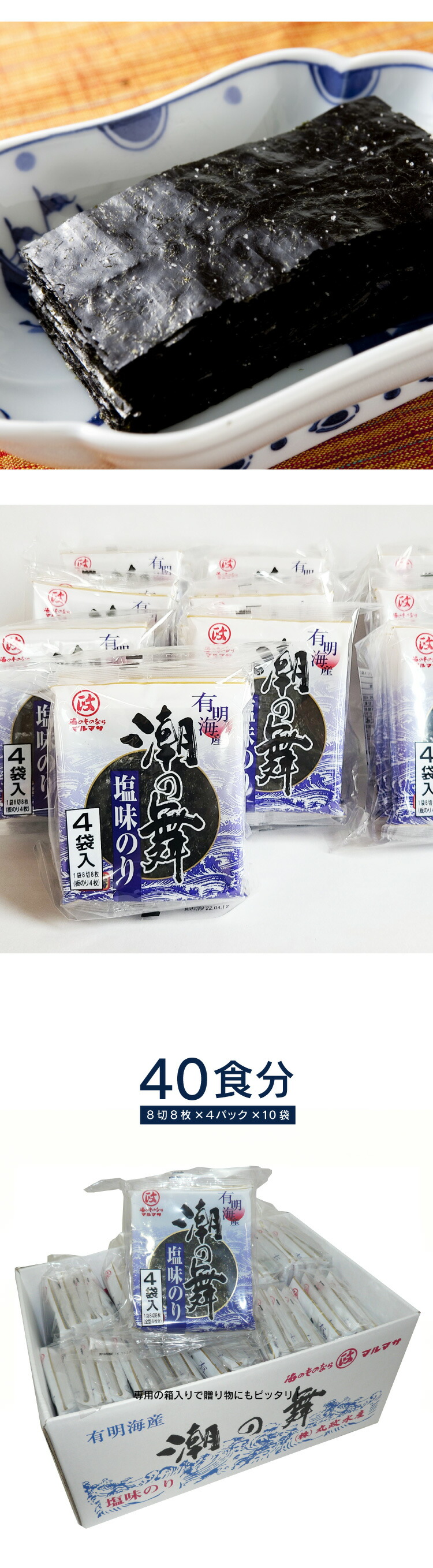 | 商品名 | 潮の舞 4袋×10パック(塩味のり) |