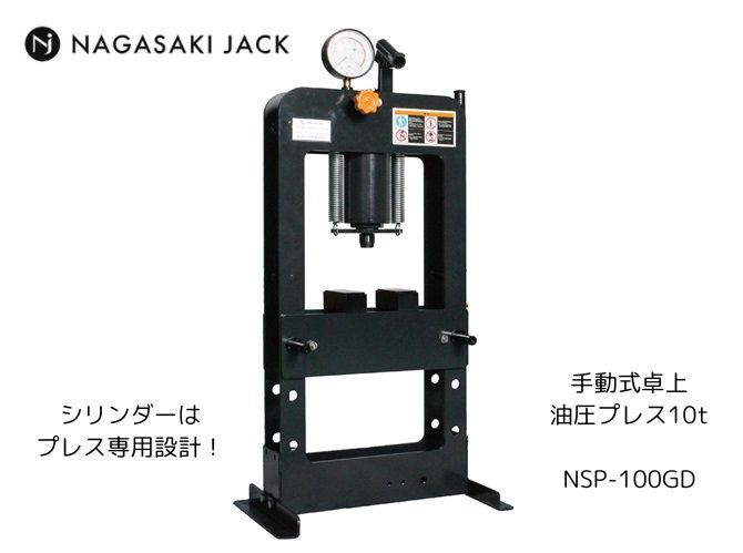 ●能力(t):10●ラム揚程(mm):150●ねじ揚程(mm):80●フレーム内幅(mm):300●全高(mm):993●ベース寸法(mm):489×350●重量(kg):52●テーブル内幅(mm):119●受け金径(mm):32●受け金・テーブル最小間隔(mm):130●ヤゲン台寸法(mm):37×38×122●テーブル上下移動(mm):200