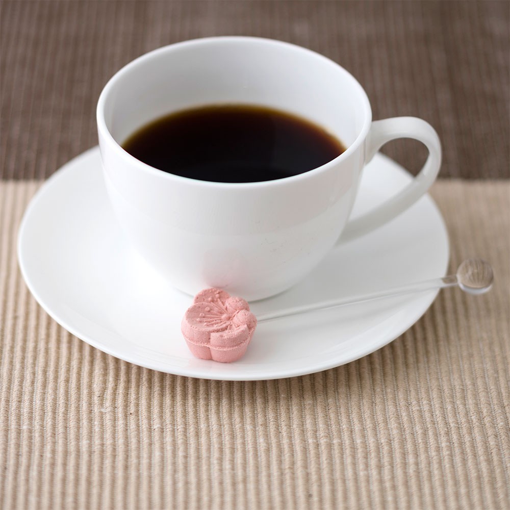 和三盆糖の伝統的な干菓子を、コーヒー・紅茶のデザインシュガーとして新たな楽しみ方の提案をいたしました。和三盆糖は、300年の歴史を持つ日本独自の高級砂糖で、独特のまろやかさと品の良い口当たりが特徴です。普段は茶席などでお召し上がりいただくことの多い菓子ですが、実はコーヒーや紅茶との相性も抜群で、包み込むような優しい甘さと、切れの良さを感じることができます。どうぞそのまま混ぜ溶かしてお使いください。 経済産業省「the Wonder 500」認定商品