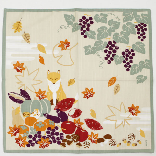 濱文様 小布 秋の贈り物 メール便 秋 紅葉 ぶどう きつね お弁当包み 小風呂敷