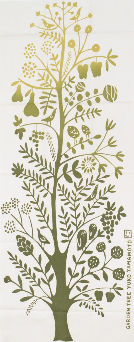 にじゆら てぬぐい GARDEN TREE カーキ 作家:山本祐布子 ガーデンツリー 注染 手ぬぐい 手拭 メール便