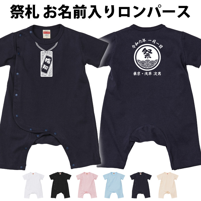 前開きロンパース 名入れ 名前入り 祭り札デザイン 【出産祝い プレゼント ベビー服 名入れ 文字入れ お誕生日 】
