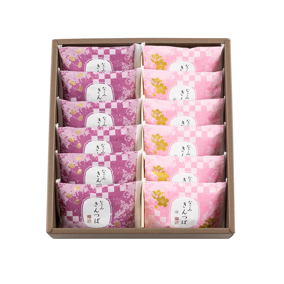 (なごみきんつば桜)砂糖(国内製造)、白いんげん豆、小麦粉、寒天、桜葉塩漬、植物油脂/トレハロース、グリシン、クチナシ色素、pH調整剤、ミョウバン、乳化剤、(一部に小麦を含む)表示アレルゲン:小麦