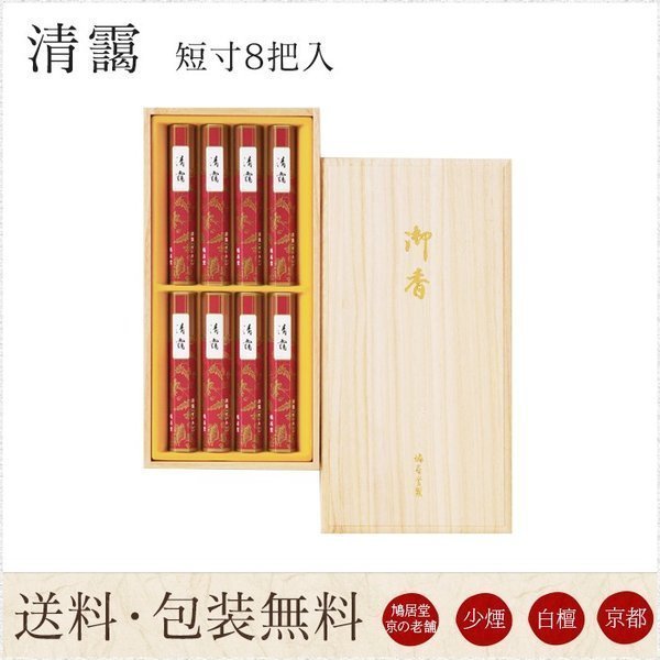 | 送料無料進物用線香お彼岸セール開催中・全品5%OFF鳩居堂清靄 せいあい 短寸 8把入 桐箱 [老山白檀][煙の少ない線香][少煙] [のし対応][喪中見舞い][喪中はがき][領収書OK][京都][沈香][香木][天然香料][お香][アロマ][白檀] | |