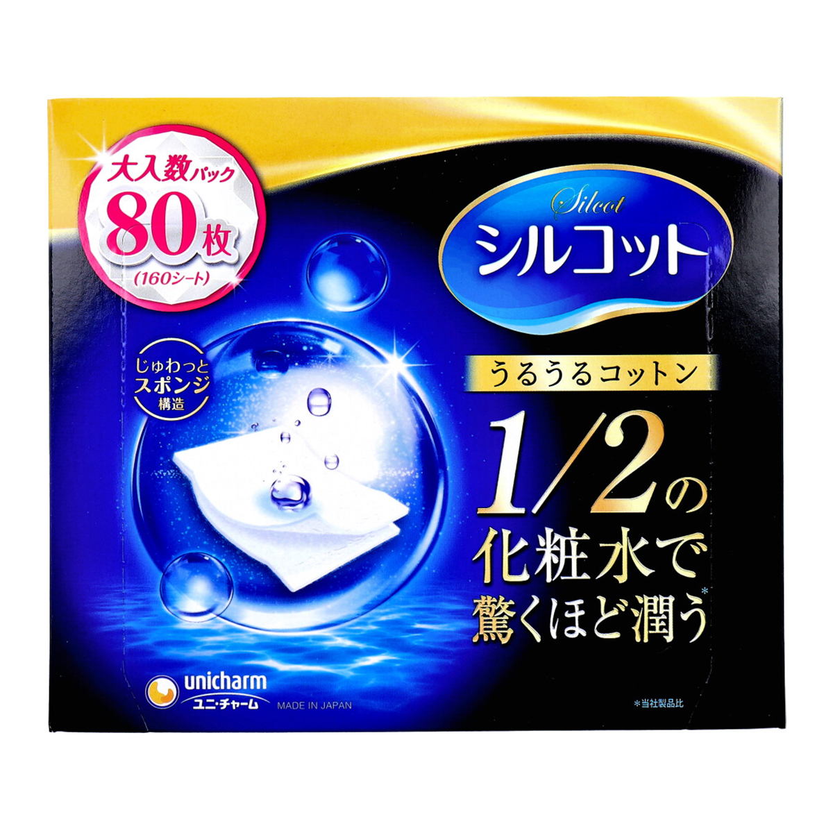 ユニ・チャーム 化粧用コットン シルコット うるうるコットン 大判サイズ 160シート 80枚入り X8箱