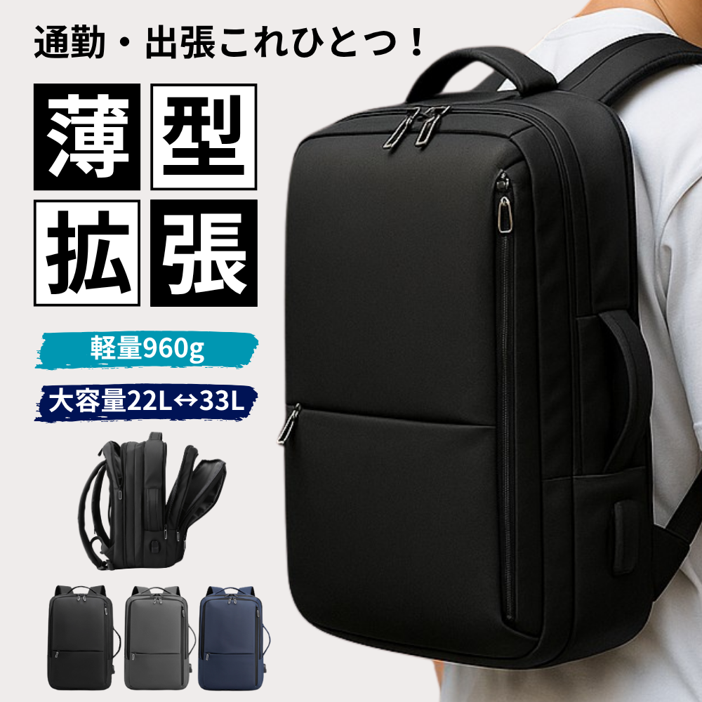 通勤 出張 軽量 大容量 拡張 4way USBポート キャリーオン 自立 撥水 防水 PC収納 ノートパソコン対応 A4対応 多収納 ポケット多い スリムタイプ フラット設計 セキュリティポケット 機内持ち込み可 書類収納 ペットボトル収納 ショルダーベルト収納可 耐久性 ナイロン素材 PUレザー シンプル おしゃれ かっこいい スーツに合う カジュアル兼用 ビジカジ両用 ショルダー切替 ハンドル付き バックパック 自転車通勤 電車通勤 リクルート 営業向け 移動が多い仕事 大学生 新社会人 社会人 30代 40代 50代 プレゼント 誕生日プレゼント 父の日ギフト クリスマスプレゼント 就職祝い 入学祝い バレンタインギフト 1泊 一泊出張 2泊3日 3泊 旅行兼用 ブラック ネイビー グレー