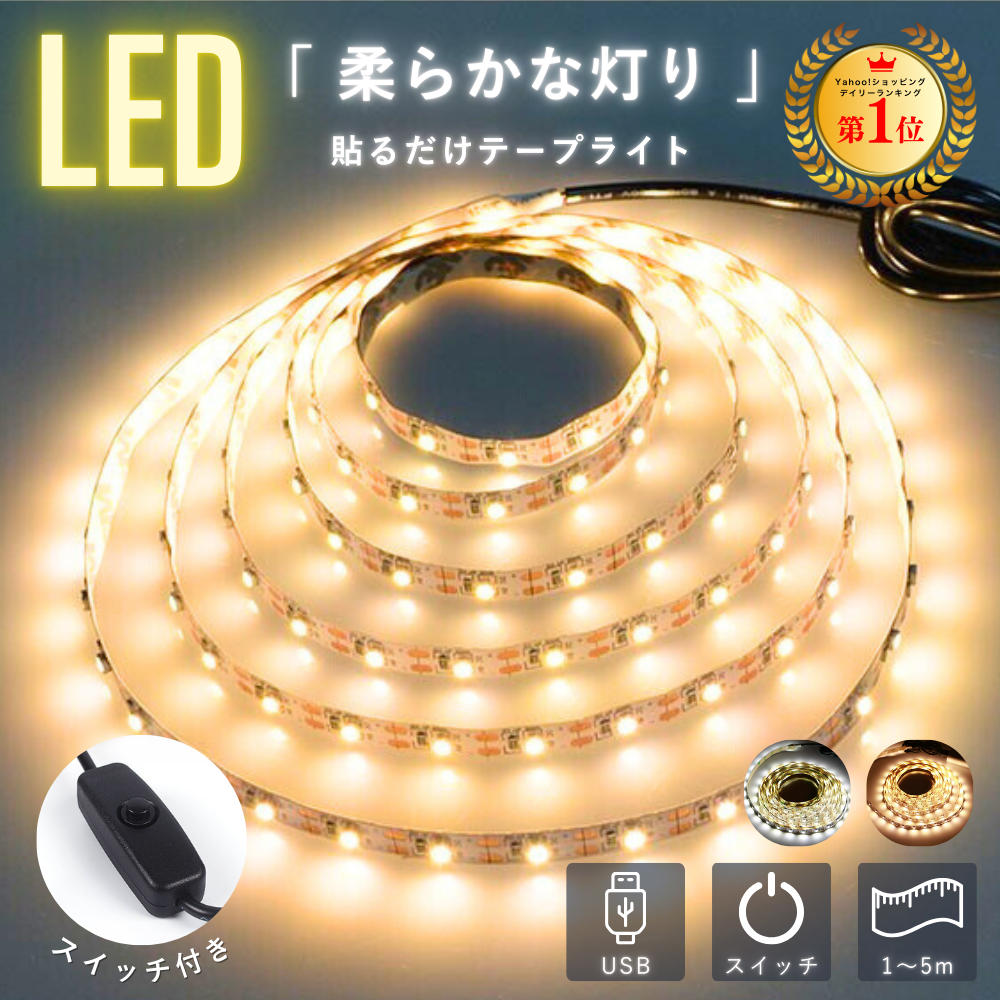 テープライト led 5m 3m 2m 1m USB スイッチ付 間接照明 電球色 白 イルミネーション 在庫処分