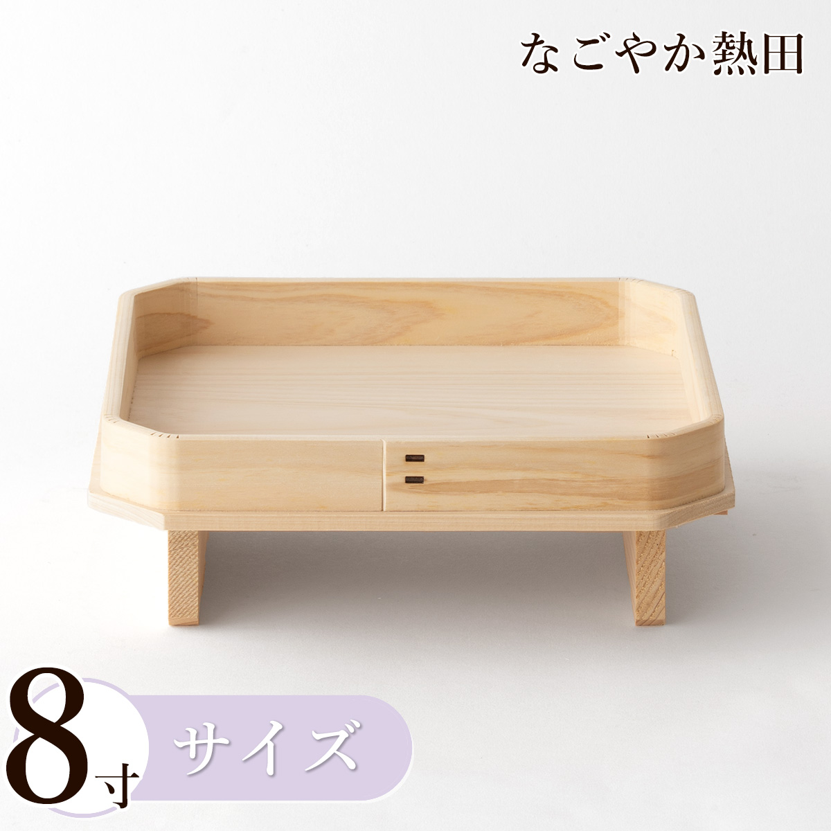 | ひのきらしさが際立つ清楚な板目、滑らかな手触り。 専門工房の職人による、丁寧な手しごとから生まれる足付き三方(あしつきさんぽう) 受け継がれる工芸品、そっと香る清らかな木肌が伝統の姿を今に伝えます。 |