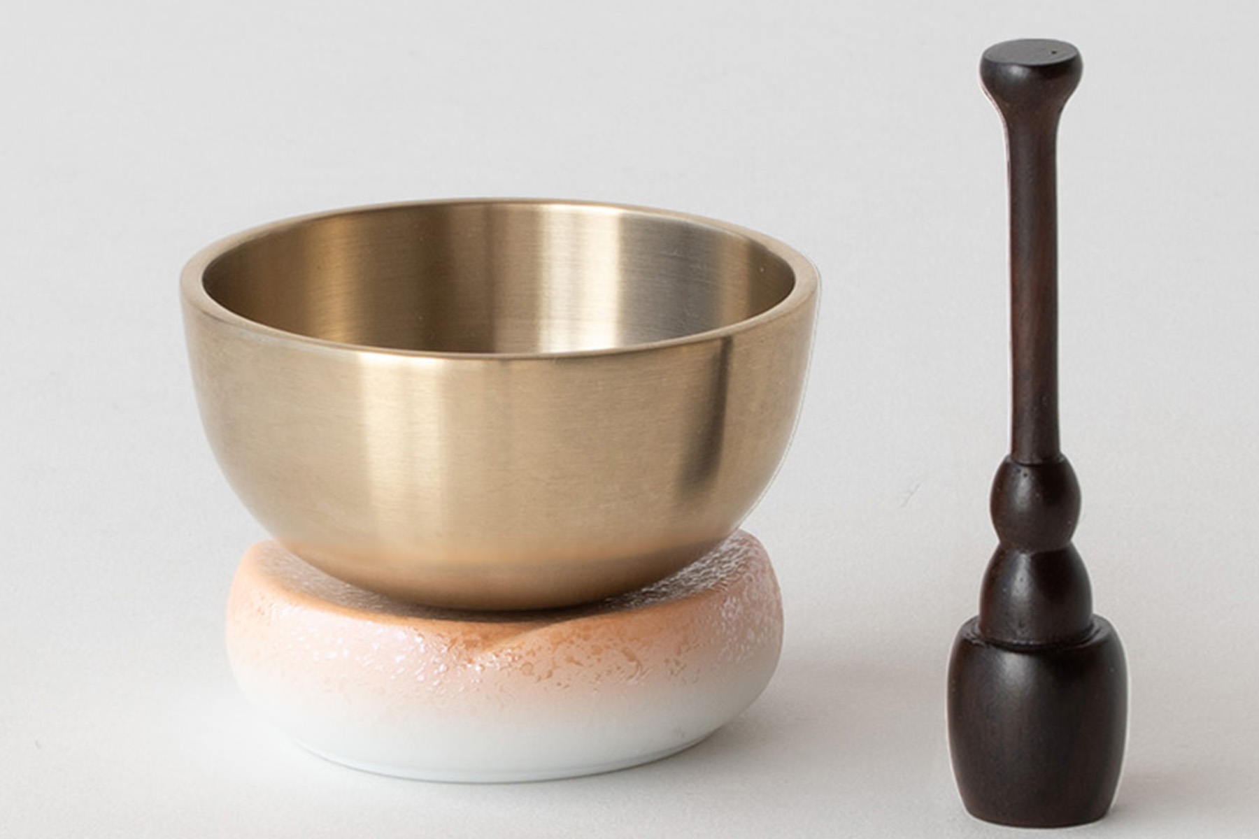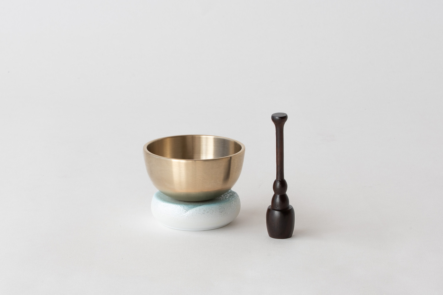 | 自立するモダンなりん棒に、おりんは名産地、富山高岡産。 りん台は親しみやすい国産陶器製。シリコンリング付きで機能面も◎ 響き渡る清々しい音色は、日本の祈りを長く支えてきた伝統技術により生み出される本物の証。 |