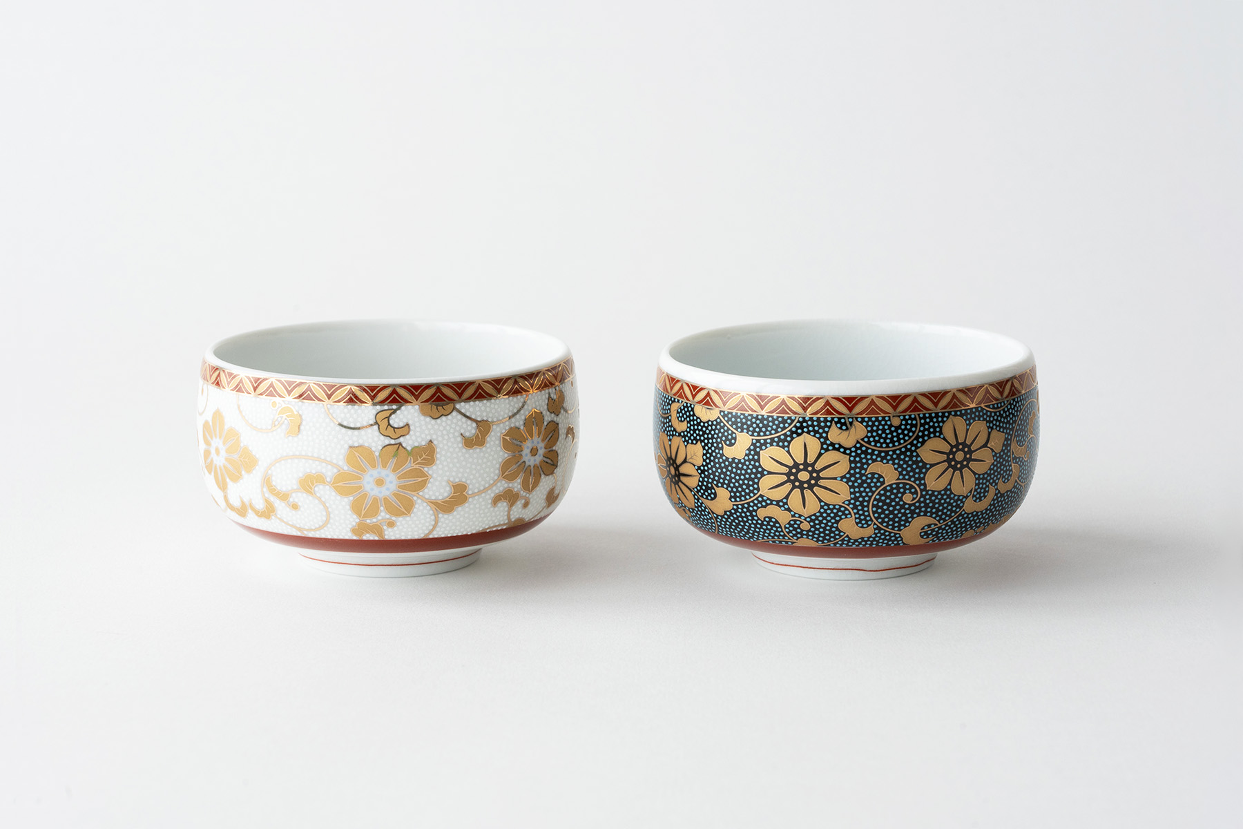 | 深みのある色彩美。美しい湯呑茶碗は350年の歴史と伝統を受け継ぐ九谷焼(くたにやき) 丁重なおもてなしに最適な、格式の高い伝統工芸品です。 |