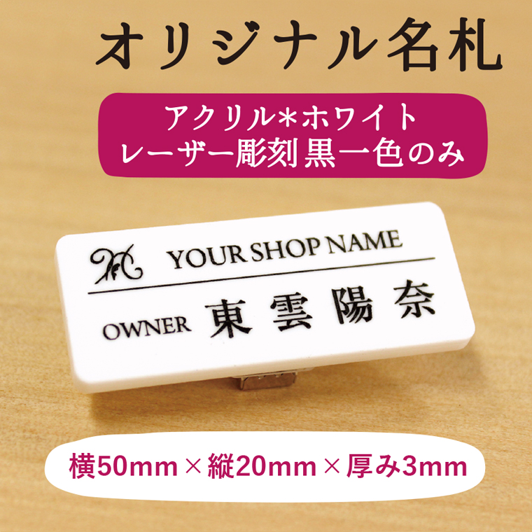 名札 ネームプレート ホワイト 50mm×20mm×3mm アクリル 白 ネームタグ 1点より作成 クリップ止め オーダーメイド オリジナル