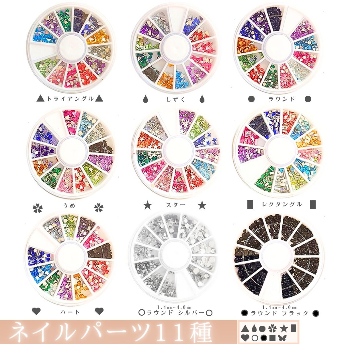 ネイルパーツ11種1種12カラー