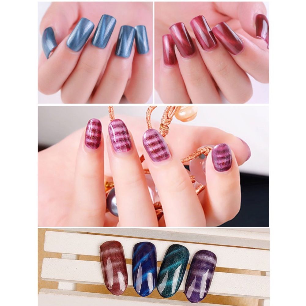マグネットジェルや(クリアジェルやアイシングジェルに混ぜた)マグネットパウダーにMAGスティックを近づけると幻想的な模様やラインが作れます。