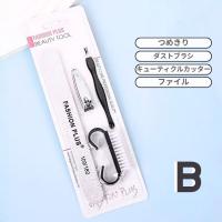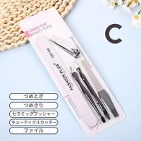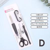 お手軽で高コスパ!ネイルケアに必要なアイテムがぎゅっと詰まったネイルケアセット自宅でのネイルケアをもっと手軽にもっと身近に楽しめるネイルケアセットが登場しました。日常の爪ネイルのお手入れに必要なアイテムをまとめて揃えた便利で格安なセットです。本商品は用途やお好みに合わせて選べるA・B・C・Dの4種類をご用意しており、それぞれセット内容が異なります。ネイルケア初心者の方はもちろん、すでにセルフネイルを楽しんでいる方のサブアイテムとしても使いやすく、シンプルで実用性の高い構成となっています。必要なツールだけを無駄なく安く揃えたい方にもおすすめです。AつめきりセラミックプッシャーキューティクルカッターファイルBつめきりダストブラシキューティクルカッターファイルCつめとぎつめきりセラミックプッシャーキューティクルカッターファイルDつめとぎつめきりダストブラシキューティクルカッターはさみ