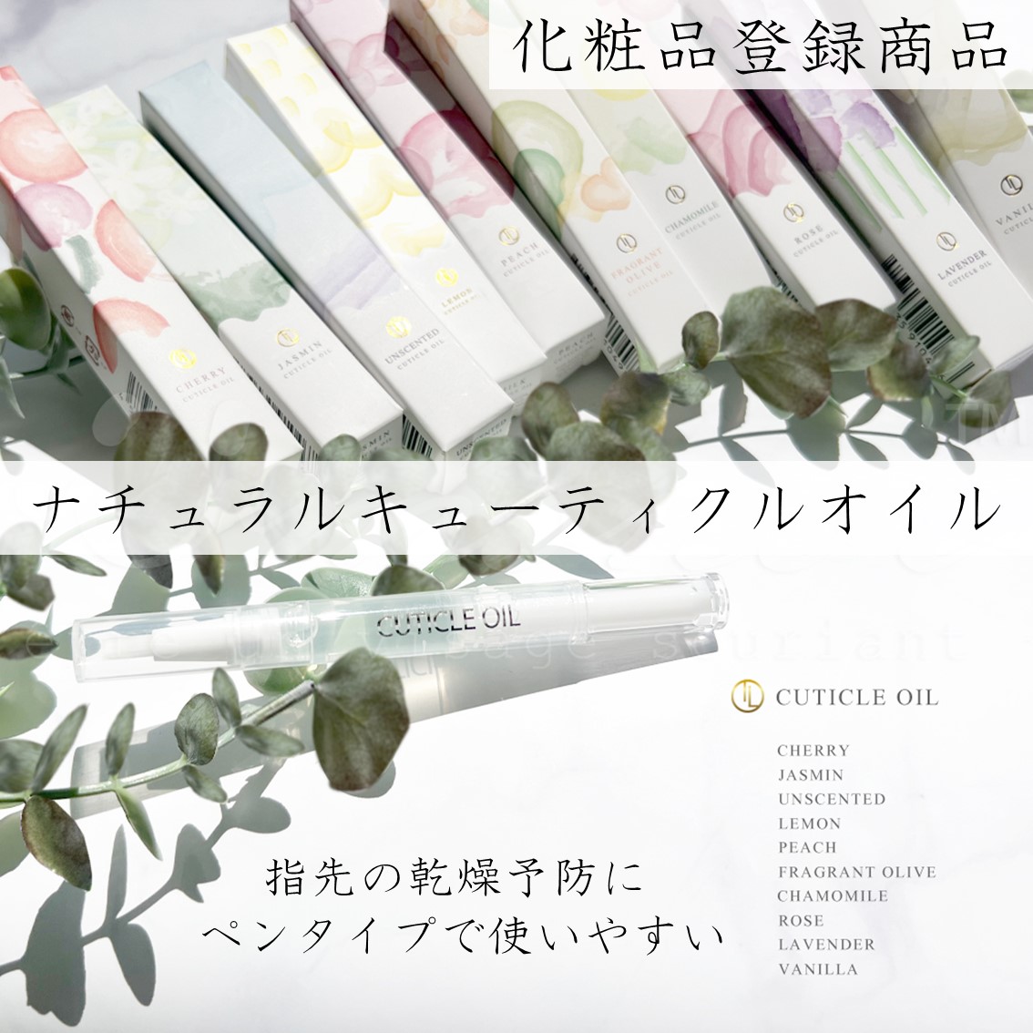 ネイルオイル キューティクルオイル ペンタイプ ナチュラル ジェルネイル ケアオイル 無香料 キンモクセイ バニラ チェリー カモミール ローズ ラベンダー