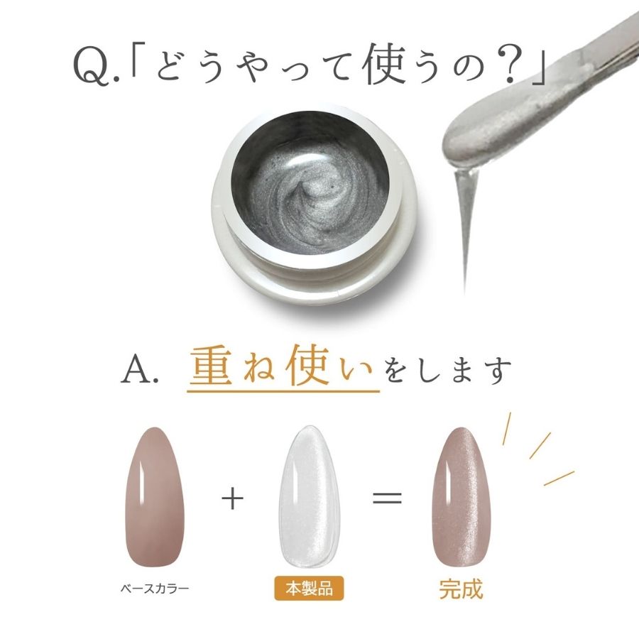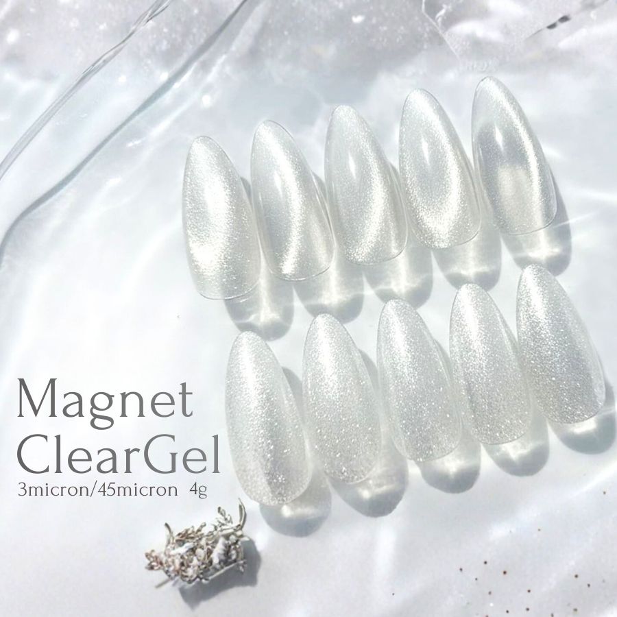 透明度の高いクリアジェルにマグネット粒子を配合したジェル。