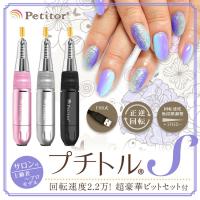| 備考 | ●プチトルSはネイルサロンでもご使用いただけますが、修理中の代替品等のご用意はございません。あらかじめご了承ください。また、過度なご使用には適しておりません。 ●他メーカーのバッテリーをご使用の場合、パワーが足りず回転速度が遅い、もしくは使用できない場合があります。他メーカーのバッテリーを使用時に故障などが起きた場合は、保証できかねます。正しくお使い頂く為、当社が推奨するバッテリーをご使用ください。 |